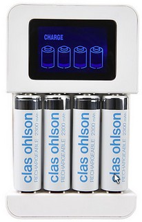 Batteriladdare LCD | ![]() | Med bakgrundsbelyst LCD-display som visar batteriernas laddstatus.