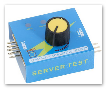 Luxorparts Servotestare | ![]() | 1(K) | Servotestare för upp till tre servon. Tre lägen: manuellt via vredet, mittposition och automatiskt fram och tillbaka. 3-polig standardanslutning. Drivs med 4,8-6 V. |