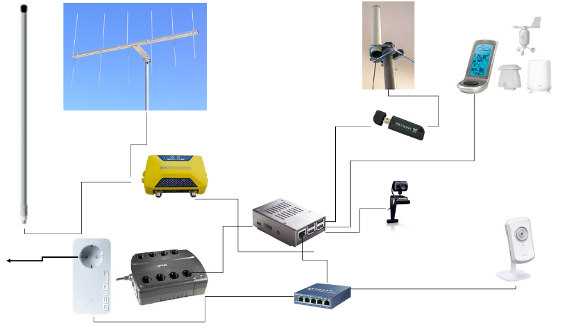 De tekniska prylar jag avser koppla in på en Raspberry Pi 3 är i princip desamma som jag har haft till Teknikdatorn, då den körde Windows 7 på en gammal Fujitsu PC. Hur det kommer att se ut framgår av bilden ovan. De prylar jag kopplar upp finns beskrivna här: www.kalltech.se.